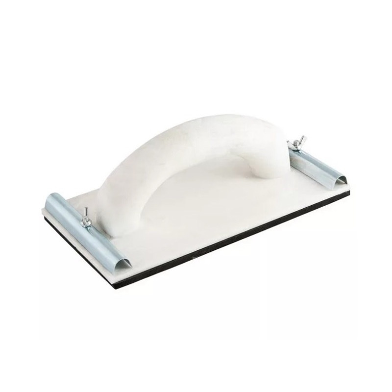 Описание и особенности: Изготовлена из ударопрочной пластмассы с резиновой поверхностью. Имеет винтовой металлический зажим, надежно фиксирующий абразивную сетку или бумагу на бруске. Оснащен винтовым зажимом для надежной фиксации.