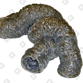 Гибкий воздуховод ПМ: металлизированная пленка PET (15 микрон), металлический спиральный каркас, стальная проволока (0,7 мм), прозрачный скотч (35 микрон).
